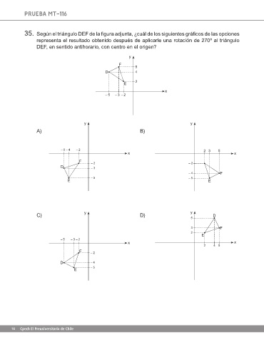 35. Según el triángulo DEF de la figura adjunta, ¿cuál de los siguientes gráficos de las opciones