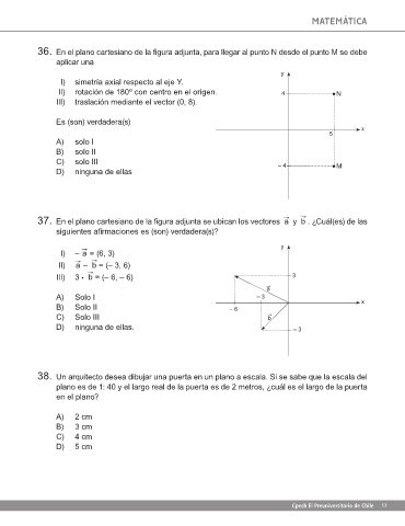 37. En el plano cartesiano de la figura adjunta se ubican los vectores a y b . ¿Cuál(es) de las