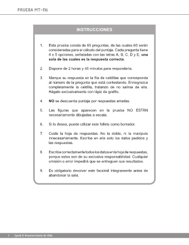 1. Esta prueba consta de 65 preguntas, de las cuales 60 serán