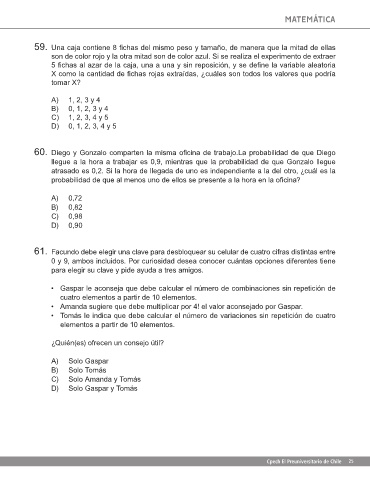 59. Una caja contiene 8 fichas del mismo peso y tamaño, de manera que la mitad de ellas
