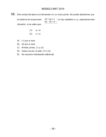 58. Dos rectas del plano se intersectan en un único punto. Se puede determinar que