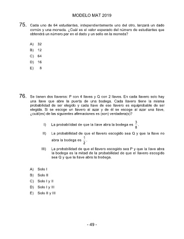 76. Se tienen dos llaveros: P con 4 llaves y Q con 2 llaves. En cada llavero solo hay