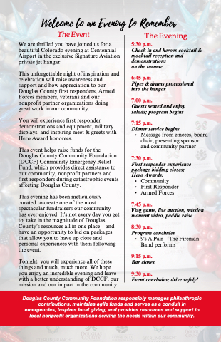 This event helps raise funds for the Douglas County Community Foundation (DCCF) Community Emergency Relief Fund, which provides direct assistance to our community, nonprofit partners and first responders during catastrophic events affecting Douglas County.