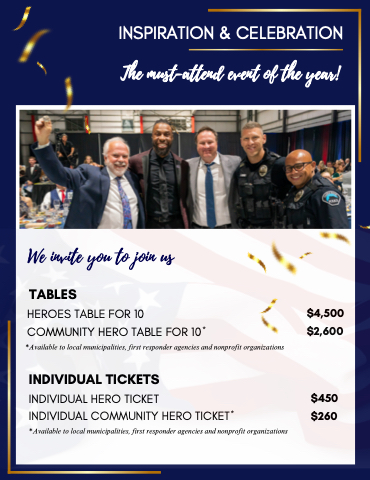 INDIVIDUAL COMMUNITY HERO TICKET* $260 *Available to local municipalities, first responder agencies and nonprofit organizations