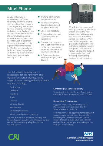 To contact the Service Delivery Team please call the ICT Service Desk on 020 3317 7200.