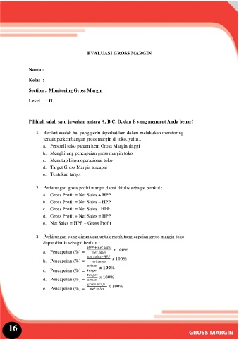 3. Perhitungan yang digunakan untuk menhitung capaian gross margin toko