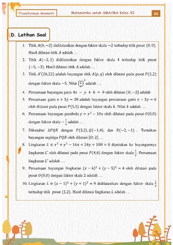 3. Titik ′(26,22) adalah bayangan titik ( , ) oleh dilatasi pada pusat (1,2)