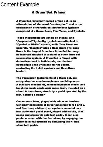 comprised of a Snare Drum, Tom Toms, and Cymbals.