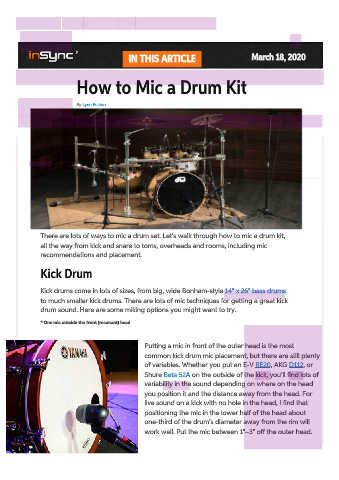 to much smaller kick drums. There are lots of mic techniques for getting a great kick