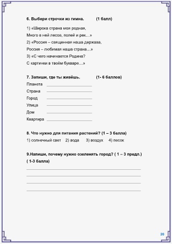 7. Запиши, где ты живёшь. (1- 6 баллов)