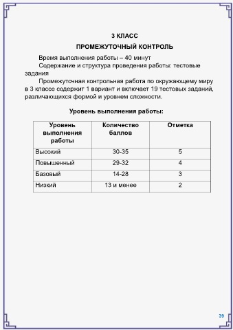 в 3 классе содержит 1 вариант и включает 19 тестовых заданий,