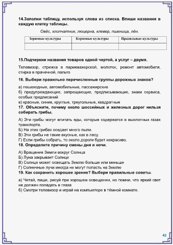 14.Заполни  таблицу,  используя  слова  из  списка. Впиши  названия  в