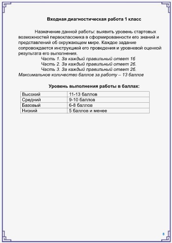 Входная диагностическая работа 1 класс