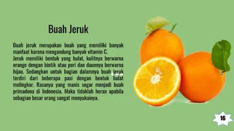 Jeruk memiliki bentuk yang bulat, kulitnya berwarna