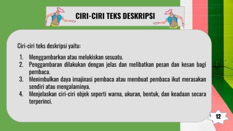 4. Menjelaskan ciri-ciri objek seperti warna, ukuran, bentuk, dan keadaan secara