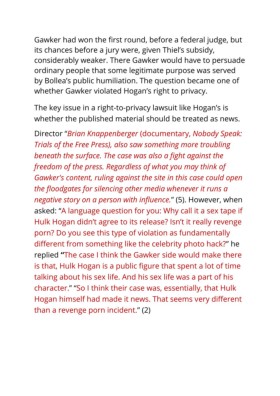 The key issue in a right-to-privacy lawsuit like Hogan’s is