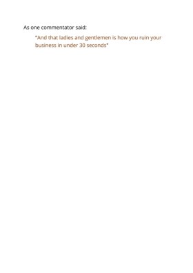 As one commentator said: "And that ladies and gentlemen is how you ruin your business in under 30 seconds"