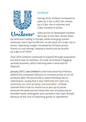 January 2017, saw Unilever’s chief executive Paul Polman,