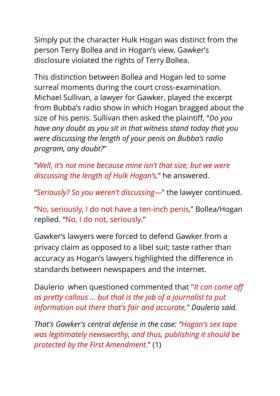 That's Gawker's central defense in the case: “Hogan's sex tape