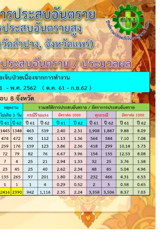 จงหวัด ลูกจาง ตาย ภาพ บางส่วน เกน 3 วัน ไม่เกน 3 วัน กรณีร้ายแรง อตราตอ 1000 ทุกกรณี อตราตอ 1000