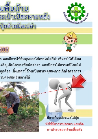 มีการใช้มือเปล่าสัมผัสสารเคมี มีการก้มหลังขณะใส่ปุ๋ย