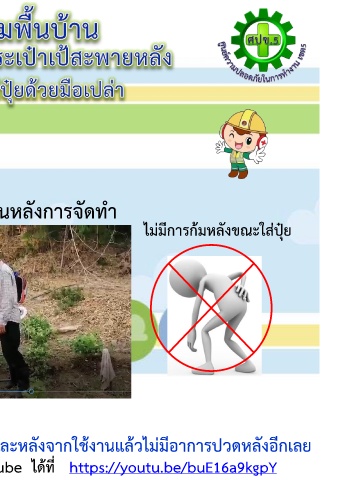 ไม่มีการใช้มือเปล่าสัมผัสสารเคมี                   ไม่มีการก้มหลังขณะใส่ปุ๋ย