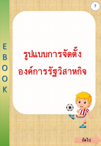 7 E B รูปแบบกำรจัดตั้ง O องค์กำรรัฐวิสำหกิจ O K ถัดไป