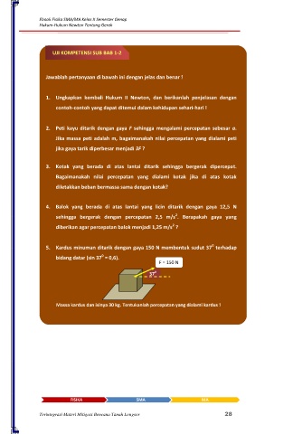 2. Peti kayu ditarik dengan gaya F sehingga mengalami percepatan sebesar a.