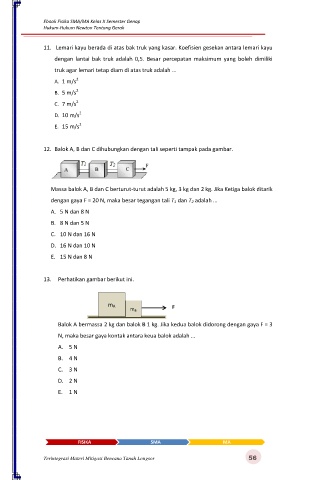 11. Lemari kayu berada di atas bak truk yang kasar. Koefisien gesekan antara lemari kayu