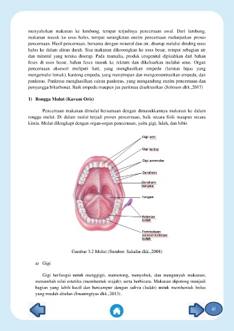rongga mulut. Di dalam mulut terjadi proses pencernaan, baik secara fisik maupun secara