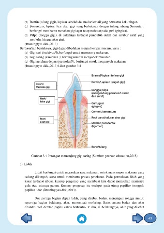 Gambar 3.4 Potongan memanjang gigi taring (Sumber: pearson education,2018)