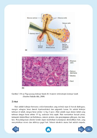 Gambar 3.18 (a) Tiga pasang kelenjar ludah (b) Anatomi mikroskopis kelenjar ludah