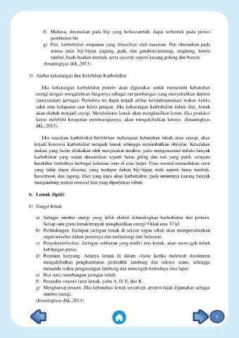 sakit atau kelaparan saat krisis pangan. Jika kekurangan karbohidrat dalam diet, lemak