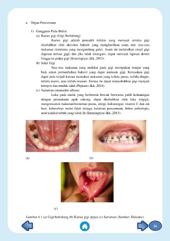 Gambar 4.1 (a) Gigi berlubang (b) Karies gigi depan (c) Sariawan (Sumber: Halodoc)