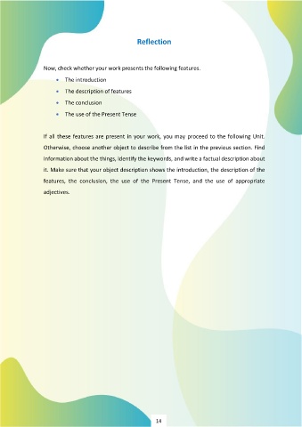 features, the conclusion, the use of the Present Tense, and the use of appropriate