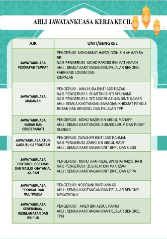 JAWATANKUASA PENGERUSI : MOHD SHAFRIZAL BIN SHAFIAI@SHAFII