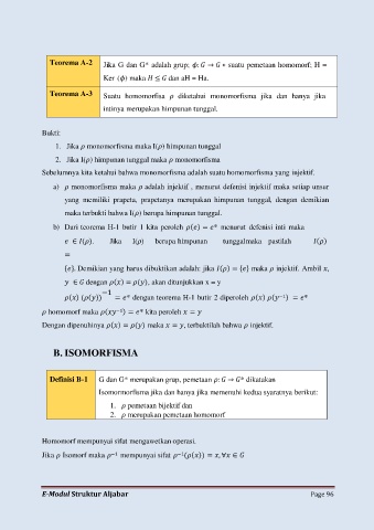 Teorema A-3 Suatu homomorfisa diketahui monomorfisma jika dan hanya jika