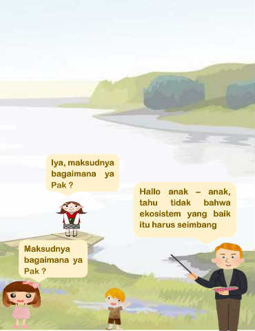 Iya, maksudnya bagaimana ya Pak ? Hallo anak – anak, tahu tidak bahwa ekosistem yang baik itu harus seimbang Maksudnya bagaimana ya Pak ?