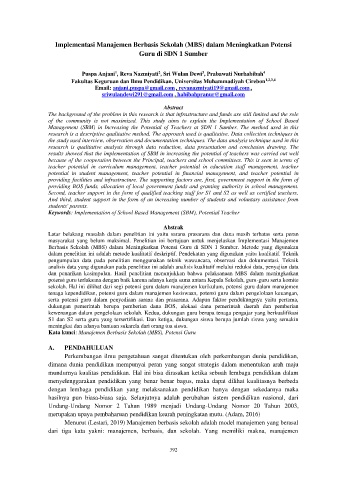 Kata kunci: Manajemen Berbasis Sekolah (MBS), Potensi Guru