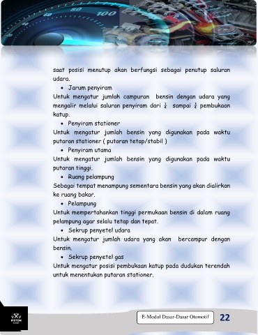 Untuk  mengatur  jumlah  bensin  yang  digunakan  pada  waktu