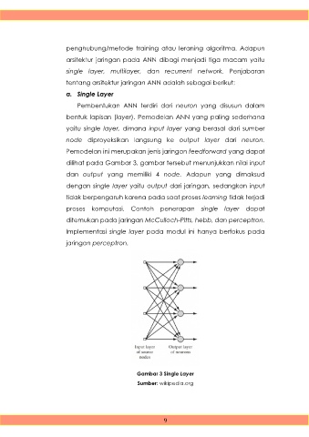 penghubung/metode training atau leraning algoritma. Adapun