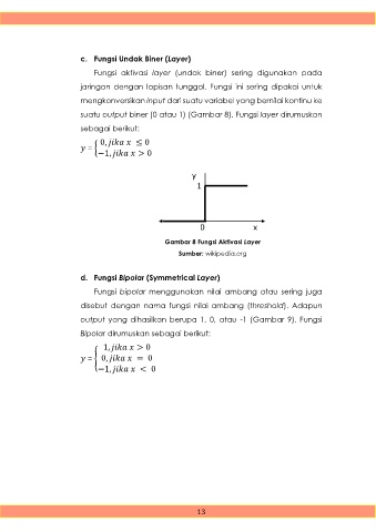 suatu output biner (0 atau 1) (Gambar 8). Fungsi layer dirumuskan