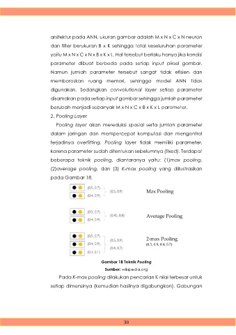 terjadinya overfitting. Pooling layer tidak memiliki parameter,