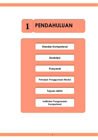 1 PENDAHULUAN Standar Kompetensi Deskripsi Prasyarat Petunjuk Penggunaan Modul Tujuan Akhir Indikator Penguasaan Kompetensi 1