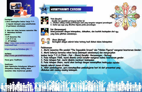 https://youtu.be/3JuXbnn-j5U 1. Murid menonton film pendek "The Impossible Dream" dan "Hidden Figures" mengenai kesetaraan Gender.