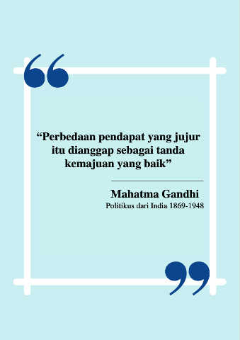 “Perbedaan pendapat yang jujur itu dianggap sebagai tanda kemajuan yang baik” Mahatma Gandhi Politikus dari India 1869-1948