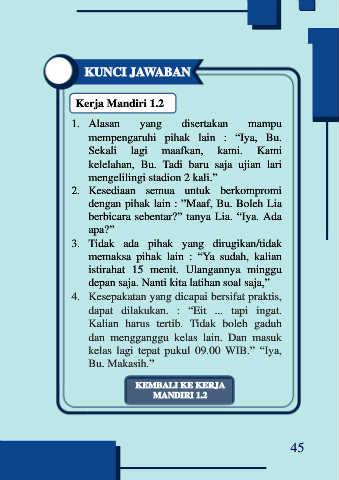 kelas lagi tepat pukul 09.00 WIB.” “Iya,