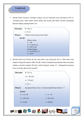 1. Sebuah benda bergerak melingkar dengan jari-jari lingkaran yang dibentuknya 80 cm.