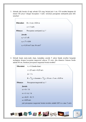 3. Sebuah titik berada di tepi sebuah CD yang berjari-jari 4 cm. CD tersebut berputar di