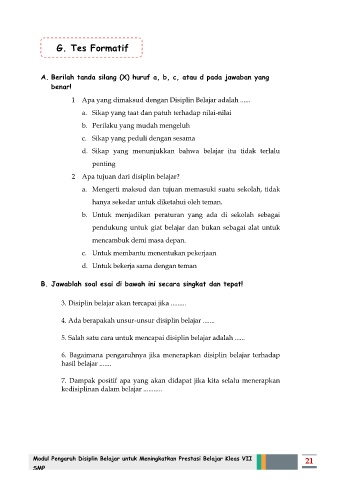 Modul Pengaruh Disiplin Belajar untuk Meningkatkan Prestasi Belajar Kleas VII 21